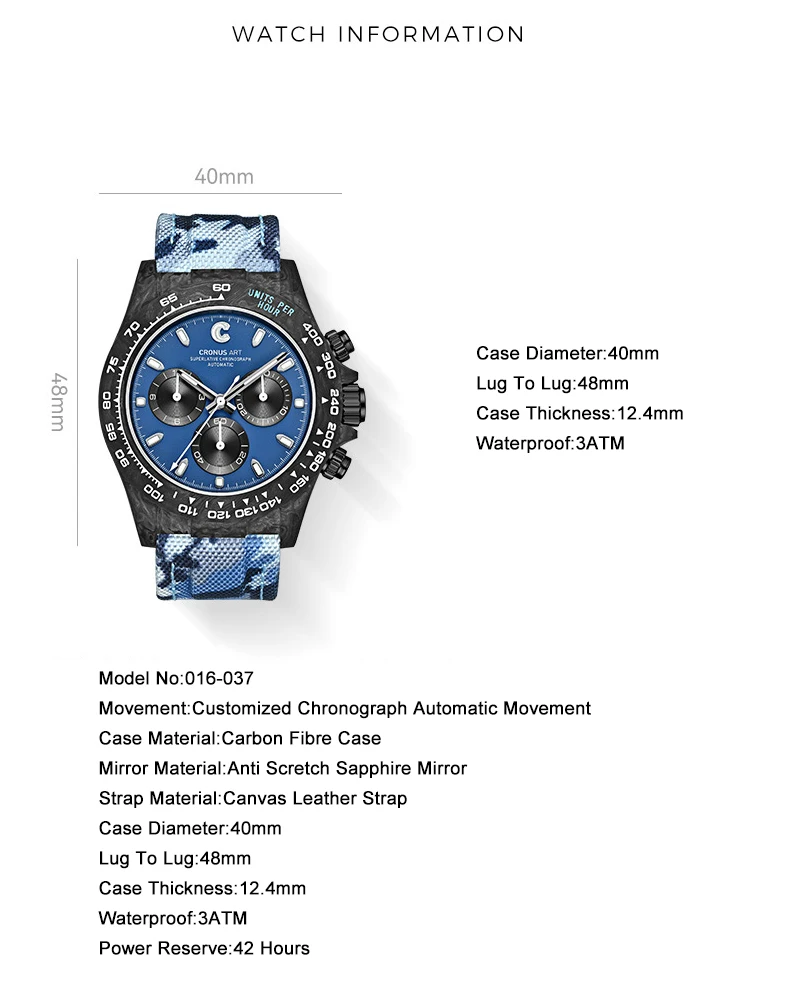 Movimento: Movimento Automático Cronógrafo Personalizado CRONUSART